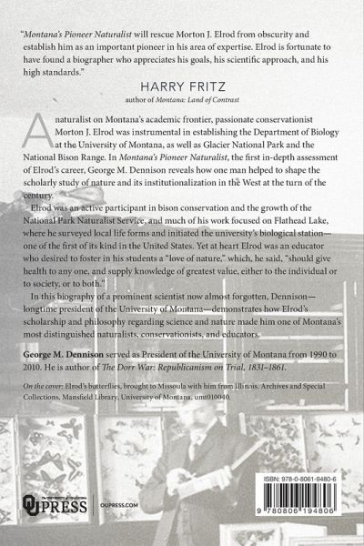 In this biography of a prominent scientist now almost forgotten, George M. Dennison--longtime president of the University of Montana--demonstrates how Elrod's scholarship and philosophy regarding science and nature made him one of Montana's most distinguished naturalists, conservationists, and educators.