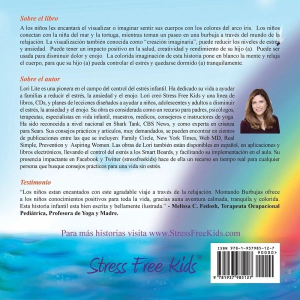 A los niños les encantará el visualizar o imaginar sentir sus cuerpos con los colores del arco iris. Los niños conectan con la niña del mar y la tortuga, mientras toman un paseo en una burbuja a través del mundo de la relajación. . La visualización también conocida como creación imaginaria , puede reducir los niveles de estrés y ansiedad. Puede tener un impacto positivo en la salud, creatividad y rendimiento de su hijo (a). Puede ser usada para disminuir dolor y enojo. La colorida imaginación de esta historia pone en blanco la mente y relaja el cuerpo, para que su hijo (a) pueda controlar el…mehr