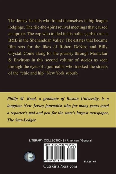 The Jersey Jackals who found themselves in big-league lodgings. The rile-the-spirit revival meetings that caused an uproar. The cop who traded in his police garb to run a B&B in the Shenandoah Valley. The estates that became film sets for he likes of Robert DeNiro and Billy Crystal. Come along for the journey through Montclair & Environs in this second volume of stories as seen through the eyes of a journalist who trekked the streets of the "chic and hip" New York suburb.