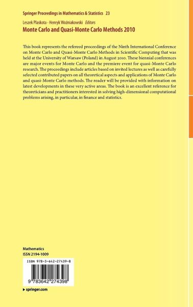 This book represents the refereed proceedings of the Ninth International Conference on Monte Carlo and Quasi-Monte Carlo Methods in Scientific Computing that was held at the University of Warsaw (Poland) in August 2010. These biennial conferences are major events for Monte Carlo and the premiere event for quasi-Monte Carlo research. The proceedings include articles based on invited lectures as well as carefully selected contributed papers on all theoretical aspects and applications of Monte Carlo and quasi-Monte Carlo methods. The reader will be provided with information on latest developments in these very active areas. The book is an excellent reference for theoreticians and practitioners interested in solving high-dimensional computational problems arising, in particular, in finance and statistics.