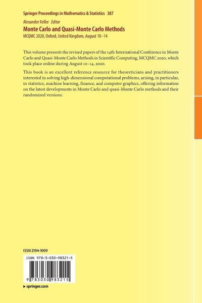 This volume presents the revised papers of the 14th International Conference in Monte Carlo and Quasi-Monte Carlo Methods in Scientific Computing, MCQMC 2020, which took place online during August 10-14, 2020. This book is an excellent reference resource for theoreticians and practitioners interested in solving high-dimensional computational problems, arising, in particular, in statistics, machine learning, finance, and computer graphics, offering information on the latest developments in Monte Carlo and quasi-Monte Carlo methods and their randomized versions.