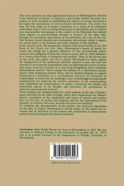 Part One of Montesquieu's Idea of Justice comprises a survey of the currency in philosophical, ethical and aesthetic debate during the second half of the 17th century of the terms rapport and convenance, which are central to the enigmatic definition given to justice by Mon tesquieu in Lettres Persanes LXXXllI. In this survey, attention is concen trated on the way in which the connotations of these terms fluctuate with the divergent development of the methodological and speculative outgrowths of Cartesian ism into two schools of thought, materialist and idealist, often widely at variance in their views of the nature and orga nization of the universe. In Part Two, Montesquieu's definition of justice is set against this background, whose doctrinal conflicts, because of the characteristic as sociations of its key terms, it may be taken to reflect, just as it may be held to epitomize, by virtue of its elaboration in the opening chapter of De l' Esprit des Lois and its close terminological affinities with the defini tion of law there given, an undoubtedly related conflict between the implications of causal determinism and the aspirations of idealist meta physics surviving at the heart of Montesquieu's outlook, and, remaining unresolved, often said to impair the coherence if not the validity of his theory of society.