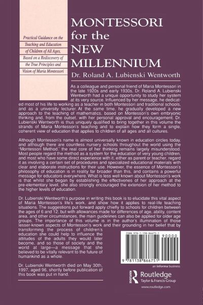 Although Montessori's name is almost universally known in education circles today, and there are countless nursery schools throughout the world using the "Montessori Method," the real core of her thinking has remained largely misunderstood. Most people regard the method as a system for the education of very young children. And most who have some direct experience of it, either as parent or teacher, would regard it as involving a certain set of procedures and specialized educational materials with clear and elaborate instructions for their use. However, the essence of Montessori's philosophy of education is in reality far broader than this, and contains a powerful message for educators everywhere. What is less well-known about Montessori's work is that she began by establishing the effectiveness of her approach at the pre-elementary level, but also strongly encouraged the extension of her method to the higher levels of education. Wentworth's purpose in writing this book is to elucidate this vital aspect of Maria Montessori's life's work and to show how it applies to real-life teaching situations. She believed that by transforming the process of children's education she could help to transform the attitudes of the adults they will later become, and so those of society and the world at large--a message she promoted as vitally relevant to the future of humankind as a whole.