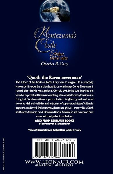 'Quoth the Raven nevermore' The author of this book-Charles Cory was an enigma. He is principally known for his expertise and authorship on ornithology. Cory's Shearwater is named after him. He was a golfer at Olympic level. So his sole foray into the world of supernatural fiction is something of an oddity. Perhaps, therefore it is fitting that Cory has written a superb collection of eighteen ghostly and weird stories to chill and thrill the avid enthusiast of supernatural fiction. Within its pages the reader will find mummies, ghosts and ghouls-many with a South and North American pre-Colombian flavour. Available in soft cover and hard cover with dust jacket for collectors.