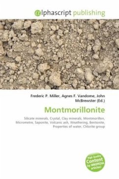 Montmorillonite is a very soft phyllosilicate group of minerals that typically form in microscopic crystals, forming a clay. It is named after Montmorillon in France. Montmorillonite, a member of the smectite family, is a 2:1 clay, meaning that it has 2 tetrahedral sheets sandwiching a central octahedral sheet. The particles are plate-shaped with an average diameter of approximately one micrometre. Members of this group include saponite. It is the main constituent of the volcanic ash weathering product, bentonite. The water content of montmorillonite is variable and it increases greatly in volume when it absorbs water. Chemically it is hydrated sodium calcium aluminium magnesium silicate hydroxide (Na,Ca)0.33(Al,Mg)2(Si4O10)(OH)2·nH2O. Potassium, iron, and other cations are common substitutes, the exact ratio of cations varies with source. It often occurs intermixed with chlorite, muscovite, illite, cookeite and kaolinite.