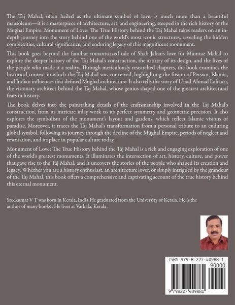 The Taj Mahal, often hailed as the ultimate symbol of love, is much more than a beautiful mausoleum-it is a masterpiece of architecture, art, and engineering, steeped in the rich history of the Mughal Empire. Monument of Love: The True History behind the Taj Mahal takes readers on an in-depth journey into the story behind one of the world's most iconic structures, revealing the hidden complexities, cultural significance, and enduring legacy of this magnificent monument. This book goes beyond the familiar romanticized tale of Shah Jahan's love for Mumtaz Mahal to explore the deeper history of the Taj Mahal's construction, the artistry of its design, and the lives of the people who made it a reality. Through meticulously researched chapters, the book examines the historical context in which the Taj Mahal was conceived, highlighting the fusion of Persian, Islamic, and Indian influences that defined Mughal architecture. It also tells the story of Ustad Ahmad Lahauri, the visionary architect behind the Taj Mahal, whose genius shaped one of the greatest architectural feats in history. The book delves into the painstaking details of the craftsmanship involved in the Taj Mahal's construction, from its intricate inlay work to its perfect symmetry and geometric precision. It also explores the symbolism of the monument's layout and gardens, which reflect Islamic visions of paradise. Moreover, it traces the Taj Mahal's transformation from a personal tribute to an enduring global symbol, following its journey through the decline of the Mughal Empire, periods of neglect and restoration, and its place in popular culture today. Monument of Love: The True History behind the Taj Mahal is a rich and engaging exploration of one of the world's greatest monuments. It illuminates the intersection of art, history, culture, and power that gave rise to the Taj Mahal, and it uncovers the stories of the people who shaped its creation and legacy. Whether you are a history enthusiast, an architecture lover, or simply intrigued by the grandeur of the Taj Mahal, this book offers a comprehensive and captivating account of the true history behind this eternal monument.