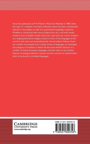 Since the publication of F. R. Palmer's first edition of Mood and Modality in 1986, when the topic of 'modality' was fairly unfamiliar, there has been considerable interest in the subject. In this book, Palmer investigates the category of modality, drawing on a wealth of examples from a wide variety of languages.