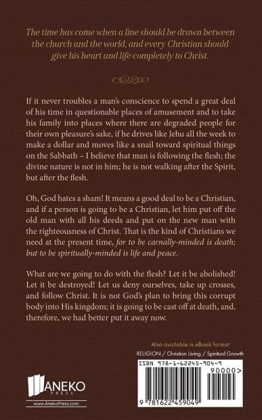 The time has come when a line should be drawn between the church and the world, and every Christian should give his heart and life completely to Christ. If it never troubles a man's conscience to spend a great deal of his time in questionable places of amusement and to take his family into places where there are degraded people for their own pleasure's sake, if he drives like Jehu all the week to make a dollar and moves like a snail toward spiritual things on the Sabbath- I believe that man is following the flesh; the divine nature is not in him; he is not walking after the Spirit, but after the flesh. Oh, God hates a sham! It means a good deal to be a Christian, and if a person is going to be a Christian, let him put off the old man with all his deeds and put on the new man with the righteousness of Christ. That is the kind of Christians we need at the present time, for to be carnally-minded is death; but to be spiritually-minded is life and peace. What are we going to do with the flesh? Let it be abolished! Let it be destroyed! Let us deny ourselves, take up crosses, and follow Christ. It is not God's plan to bring this corrupt body into His kingdom; it is going to be cast off at death, and, therefore, we had better put it away now. List of Chapters Ch. 1: The Ninety-First Psalm Ch. 2: The Eighth Chapter of Romans Ch. 3: Temptation Ch. 4: Four Questions from God Ch. 5: The Transfiguration Ch. 6: Mary and Martha Ch. 7: A Need for Revival