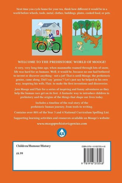 Next time you cycle home for your tea, think how different it would be in a world before wheels, tools, metal, clothes, buildings, plates, cooked food, or pets. Welcome to the prehistoric world of Mooge! A very, very long time ago, when mammoths roamed through lots of snow, life was hard for us humans. Well, it would be, because no one had bothered to invent or discover anything - not a jot! That is until Mooge, the prehistoric genius, came along. Did I say 'genius'? Let's just say he helped in his own way, inspiring his wife, Flair, to make the first inventions and discoveries. Join Mooge and…mehr