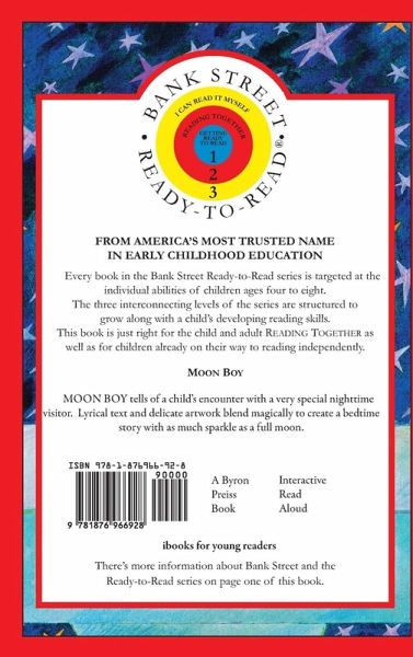 MOON BOY tells of a child's encounter with a very special nighttime visitor. Lyrical text and delicate artwork blend magically to create a bedtime story with as much sparkle as a full moon. FROM AMERICA'S MOST TRUSTED NAME IN EARLY CHILDHOOD EDUCATION More than seventy years of educational research and innovative teaching have given the Bank Street College of Education the reputation as America's most trusted name in early childhood education. Because no two children are exactly alike in their development, we have designed the Bank Street Ready-to-Read series in three levels to accommodate the individual stages of reading readiness of children ages four through eight. • Level 1: GETTING READY TO READ- (PRE-K to GRADE 1) Books are perfect for reading aloud with children who are getting ready to read or are just beginning to read words or phrases. • Level 2: READING TOGETHER-(GRADES 1 to 3) Books are written especiallly for children who are on their way to reading independently but who may need help. • Level 3: I CAN READ IT MYSELF-(GRADES 2 to 3) Books are designed for children able to read on their own. They also can be enjoyed as read-alouds.