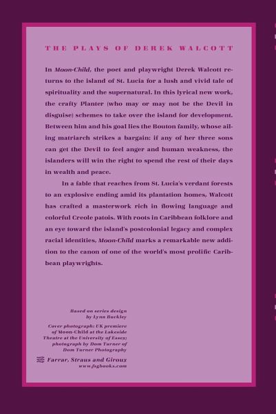 In Moon-Child, the poet and playwright Derek Walcott returns to the island of St. Lucia for a lush and vivid tale of spirituality and the supernatural. In this lyrical new work, the crafty Planter (who may or may not be the Devil in disguise) schemes to take over the island for development. Between him and his goal lies the Bouton family, whose ailing matriarch strikes a bargain: if any of her three sons can get the Devil to feel anger and human weakness, the islanders will win the right to spend the rest of their days in wealth and peace. In a fable that reaches from St. Lucia's verdant forests to an explosive ending amid its plantation homes, Walcott has crafted a masterwork rich in flowing language and colorful Creole patois. With roots in Caribbean folklore and an eye toward the island's postcolonial legacy and complex racial identities, Moon-Child marks a remarkable new addition to the canon of one of the world's most prolific Caribbean playwrights.