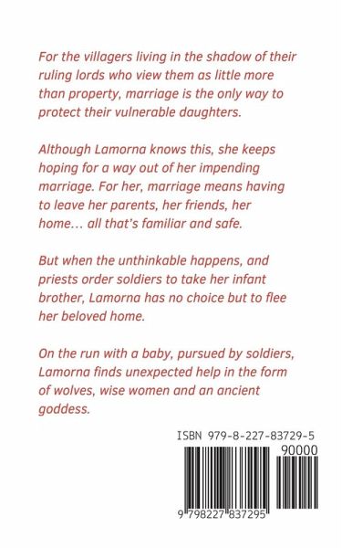 For the villagers living in the shadow of their ruling lords who view them as little more than property, marriage is the only way to protect their vulnerable daughters. Although Lamorna knows this, she keeps hoping for a way out of her impending marriage. For her, marriage means having to leave her parents, her friends, her home... all that's familiar and safe. But when the unthinkable happens and priests order soldiers to take her infant brother, Lamorna has no choice but to flee her beloved home. On the run with a baby, pursued by soldiers, Lamorna finds unexpected help in the form of wolves, wise women and an ancient goddess.