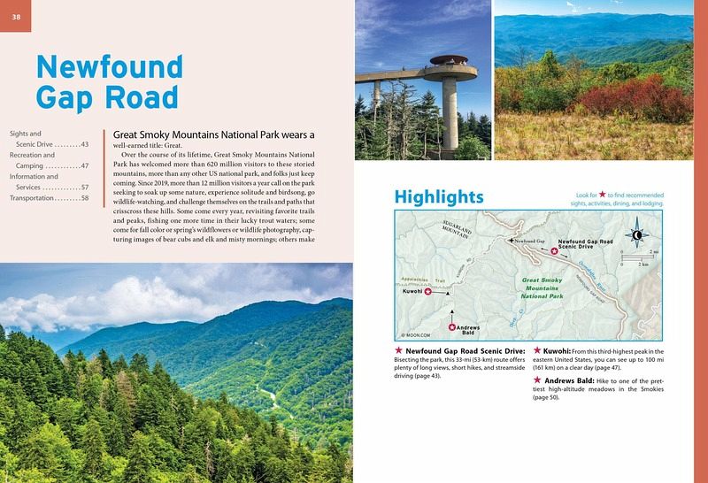 From majestic mountaintops to lush forests and untouched wilderness, experience the best of the Smokies with Moon Great Smoky Mountains National Park. Inside you'll find: * Flexible itineraries: Unique and adventure-packed ideas ranging from one day in the park to a week-long trip * The best hikes in the Great Smokies: Detailed hike descriptions with mileage, duration, elevation gains, and difficulty ratings, plus some individual trail maps and options for backpackers * Experience the outdoors: Cruise along Newfound Gap Road for epic views from scenic overlooks and watch "smoky" mists rise up through the valleys. Spot local wildlife like 700-pound elk, black bears, and vast herds of white-tailed deer. Savor the refreshing solitude of a night camping under the stars or enjoy a twinkling light show from Elkmont's synchronous fireflies. Trek a segment of the Appalachian Trail, wander through remnants of the region's historic settlements, or try your hand at fly-fishing * Take a break: Unwind after a day of adventure at one of the trendy craft breweries that earned Asheville the title of "Beer City USA." Head to Dollywood for square-dancing, catch a show, or glide down the lazy river at Splash Country. Soak in the sweet sounds of Tennessee's music scene, sample some fiery moonshine, or shop for Appalachian folk art * How to get there: Up-to-date information on gateway towns, park entrances, and tours * Where to stay: Campgrounds, resorts, and more, both inside and outside the park * Planning tips: When to go, what to pack, safety information, and how to avoid the crowds, with full-color photos and detailed maps throughout * Expertise and know-how: Explore the park with nature lover and Smoky Mountains expert Jason Frye Find your adventure in Great Smoky Mountains National Park with Moon. Exploring more of the area? Check out Moon North Carolina and Moon Tennessee. Road-tripping? Try Moon Drive & Hike Appalachian Trail or Moon Blue Ridge Parkway Road Trip. About Moon Travel Guides: Moon was founded in 1973 to empower independent, active, and conscious travel. We prioritize local businesses, outdoor recreation, and traveling strategically and sustainably. Moon Travel Guides are written by local, expert authors with great stories to tell—and they can't wait to share their favorite places with you. For more inspiration, follow @moonguides on social media.