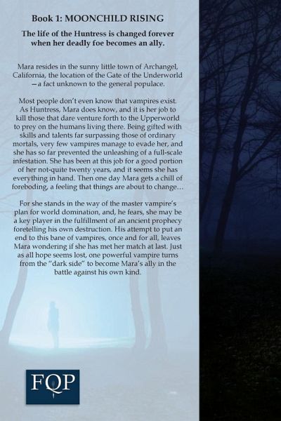 Mara the Huntress resides in the sunny little town of Archangel, California, the location of the Gate of the Underworld-a fact unknown to the general populace. Most people don't even know that vampires exist. As Huntress, Mara does know, and it is her job to kill those that dare venture forth to the Upperworld to prey on the humans living there. She is well-suited to this purpose, gifted with skills and talents far surpassing those of ordinary mortals. Though some vampires manage to evade her, she has so far managed to prevent the unleashing of a full-scale infestation. She has been at this job for a good portion of her not-quite twenty years, and it seems she has everything in hand. Then one day she gets a chill of foreboding, a feeling that things are about to change...For she stands in the way of the master vampire's plan for world domination, and, he fears, may be a key player in the fulfillment of an ancient prophecy foretelling his destruction. One dark night he sends the mighty Prince (his second in command) to put an end to this Huntress, this bane of vampires, once and for all. Mara confidently goes out to face him, but finds she has met her match at last. Just as all hope seems lost, this powerful vampire turns from the "dark side" to become Mara's ally in the battle against his own kind.