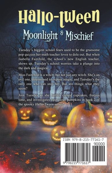 TUESDAY SKULLCAP, YOUR FAVORITE TWEEN WITCH, IS AT IT AGAIN! MISCHIEF ABOUNDS IN THIS SEQUEL TO GRAVEYARDS AND GHOULIES. Tuesday's biggest school fears used to be the gruesome pop quizzes her math teacher loves to dole out. But when Isabella Fairchild, the school's new English teacher, shows up, Tuesday's school worries take a plunge into the dark and magical. Miss Fairchild is a witch, but not just any witch. She's an evil one, determined to expose magic, and Tuesday's the only one who can stop her. But are things what they seem? Join Tuesday as she battles cursed cupcakes, freezes time, and investigates suspicious pumpkins in book 2 of the spooky Hallo-Tween series!