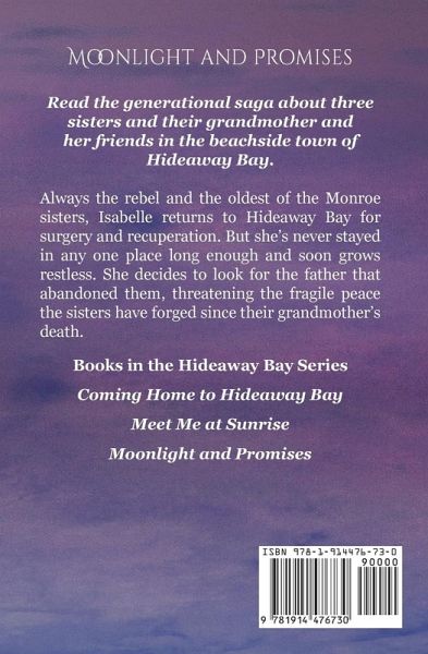 Always the rebel and the oldest of the Monroe sisters, Isabelle returns to Hideaway Bay for surgery and recuperation. But she's never stayed in any one place long enough and soon grows restless. She decides to look for the father that abandoned them, threatening the fragile peace the sisters have forged since their grandmother's death.