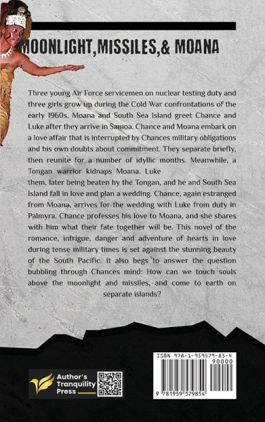 Three young Air Force servicemen on nuclear testing duty and three girls grow up during the Cold War confrontations of the early 1960s. Moana and South Sea Island greet Chance and Luke after they arrive in Samoa. Chance and Moana embark on a love affair that is interrupted by Chances military obligations and his own doubts about commitment. They separate briefly, then reunite for a number of idyllic months. Meanwhile, a Tongan warrior kidnaps Moana. Lukes friend Nakia saves them, later being beaten by the Tongan, and he and South Sea Island fall in love and plan a wedding. Chance, again estranged from Moana, arrives for the wedding with Luke from duty in Palmyra. Chance professes his love to Moana, and she shares with him what their fate together will be. This novel of the romance, intrigue, danger and adventure of hearts in love during tense military times is set against the stunning beauty of the South Pacific. It also begs to answer the question bubbling through Chance's mind: How can we touch souls above the moonlight and missiles, and come to earth on separate islands?