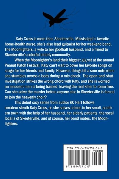 Katy Cross is more than Skeeterville's favorite home health nurse, she's also the lead guitarist for her weekend band, The Moonlighters. Katy and the band land their biggest gig yet at the annual Peanut Patch Festival, but things hit a sour note when she stumbles across a body during a mic check. When the investigation strikes the wrong chord, Katy is determined to find the real killer before anyone else is forced to join the heavenly choir. This humorous Christian cozy mystery has no graphic gore, foul language or sexual content, but is filled with lots of laughs, intrigue, and heart. It is perfect for fans of amateur sleuths and small towns.