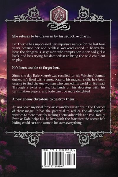 She refuses to be drawn in by his seductive charm... Liz Thorne has suppressed her impulsive nature for the last four years because her one reckless weekend ended in heartache. Now, the dangerous, sexy man who tempts her inner bad girl is back, and he's trying his damnedest to bring the wild child out to play. He's been unable to forget her... Since the day Rafe Xuereb was recalled for his Witches' Council duties, he's lived with regret. Despite his magical skills, he's been unable to find the one woman who turned his world on its head. Through a twist of fate, Liz lands on his doorstep with his termination papers, and Rafe can't be more delighted. A new enemy threatens to destroy them... An unknown mystical force arises and begins to drain the Thornes of their magic. It has the potential to reduce the all-powerful witches to mere mortals, making them vulnerable to a rival family. Even as Rafe helps Liz, he lives with the fear that the secret he's hiding could cost the woman he loves everything.