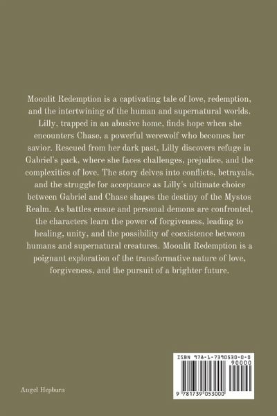 Moonlit Redemption is a captivating tale of love, redemption, and the intertwining of the human and supernatural worlds. Lilly, trapped in an abusive home, finds hope when she encounters Chase, a powerful werewolf who becomes her savior. Rescued from her dark past, Lilly discovers refuge in Gabriel's pack, where she faces challenges, prejudice, and the complexities of love. The story delves into conflicts, betrayals, and the struggle for acceptance as Lilly's ultimate choice between Gabriel and Chase shapes the destiny of the Mystos Realm. As battles ensue and personal demons are confronted, the characters learn the power of forgiveness, leading to healing, unity, and the possibility of coexistence between humans and supernatural creatures. Moonlit Redemption is a poignant exploration of the transformative nature of love, forgiveness, and the pursuit of a brighter future.
