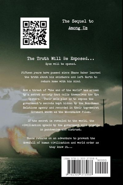 The sequel to Among Us: Fifteen years have passed since Shane Baker learned the truth about his existence and left Earth to return home with his kind. Now a threat of the "end of the world" has arisen by a secret society that calls themselves the Eye Openers. Their sole plan is to expose the government's secrets kept hidden by the Non-Human Relations agency and recorded in their top-secret document known as the Moonshadow files. If the secret is revealed to the world, the civilization upheld by the government will crumble in pandemonium and distrust. Shane returns on an adventure to prevent the downfall of human civilization and world order as they know it...