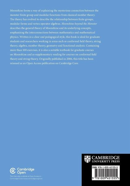 This book describes the general theory of Moonshine and its underlying concepts. It is ideal for graduate students and researchers in areas such as conformal field theory, string theory, algebra, number theory, geometry and functional analysis. This 2006 title has been reissued as an Open Access publication on Cambridge Core.