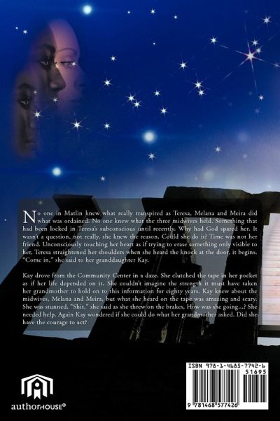 No one in Matlin knew what really transpired as Teresa, Melana and Meira did what was ordained. No one knew wha the three midwives held. Somthing that had been locked in Teresa's subconscious until recently. Why had God spared her. It wasn't a question, not really, she knew the reason. Could she do it? Time was not her friend. Unconsciously touching her heart as if trying to erase something only visible to her, Teresa straightened her shoulders when she heard the knock at the door, it begins. "Come in," she said to her grandaughter Kay. Kay drove from the Commuity Center in a daze. She clutched the tape in her pocket as id her life depended on it. She couldn't imagine the strength it must have taken her grandmother to hold on to this information for eighty years. Kay knew about the midwives, Melana and Meira, but what she heard on the tape was amazing and scary. She was stunned. "Shit," she said as she threw on the brakes, How was she going...? She needed help. Again Kay wondered if she could do what her grandmother asked. She she have the courage to act?