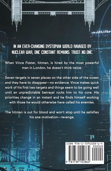 In an ever changing post-nuclear world, one constant remains: trust no one. When Vince Foster, hitman, is hired by the most powerful man in London, he doesn't think twice. Seven targets in seven places on the other side of the ocean and they have to disappear-no evidence. Vince makes quick work of his first two targets and things seem to be going well, until an unpredictable betrayal rocks him to his core. His priorities change in an instant and he finds himself working with those that he would otherwise have described as his enemy, but they are united by their common enemy. The hitman is out for blood and he won't stop until he satisfies his one motivation-revenge.