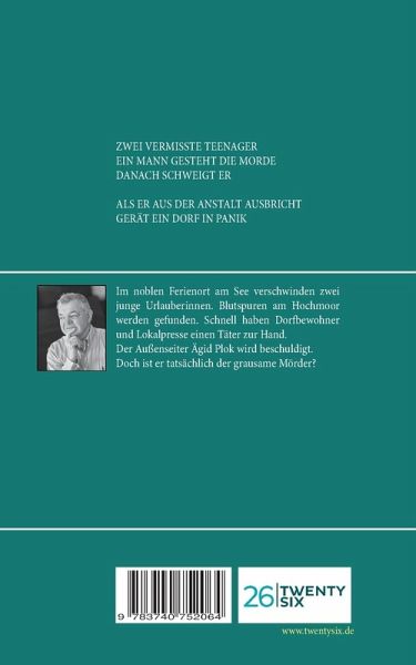 ZWEI VERMISSTE TEENAGEREIN MANN GESTEHT DIE MORDEDANACH SCHWEIGT ERALS ER AUS DER ANSTALT AUSBRICHTGERÄT EIN DORF IN PANIKIm idylischen Ferienort am See verschwinden zwei Urlauberinnen spurlos. Als man am nahen Hochmoor Blutspuren findet, hat die Bevölkerung schnell einen Mörder zur Hand.Ägid Plok - Außenseiter im Dorf - wird beschuldigt.Doch war er wirklich der Mörder?Hochspannung in einem Top-Thriller von martin cereza.