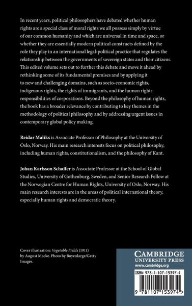 Expanding the debate on moral and political approaches to the philosophy of human rights Johan Karlsson Schaffer and Reidar Maliks; Part I: 1. Theory, politics, and practice: methodological pluralism in the philosophy of human rights Kristen Hessler; 2. The point of the practice of human rights: international concern or domestic empowerment? Johan Karlsson Schaffer; 3. Rawl's relational conception of human rights Luise Katharina Müller; 4. Theories of human rights: political or orthodox - why it matters Andreas Follesdal; 5. Mediating the theory and practice of human rights in morality and law David Ingram; 6. Kantian human rights or how the individual has come to matter in international law Howard Williams; Part II: 7. Human rights solidarity: moral or political? Seth Mayer; 8. When the practice gets complicated: human rights, migrants and political institutions Jelena Belic; 9. Can naturalistic theories of human rights accommodate the indigenous right to self-determination? Kerstin Reibold; 10. Political conceptions of human rights and corporate responsibility Daniel P. Corrigan; 11. Socio-economic rights: between essentialism and egalitarianism Malcolm Langford.