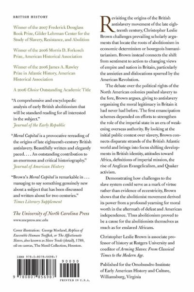 Revisiting the origins of the British antislavery movement of the late eighteenth century, Christopher Leslie Brown challenges prevailing scholarly arguments that locate the roots of abolitionism in economic determinism or bourgeois humanitarianism. Brown instead connects the shift from sentiment to action to changing views of empire and nation in Britain at the time, particularly the anxieties and dislocations spurred by the American Revolution. The debate over the political rights of the North American colonies pushed slavery to the fore, Brown argues, giving antislavery organizing the moral legitimacy in Britain it had never had before. The first emancipation schemes were dependent on efforts to strengthen the role of the imperial state in an era of weakening overseas authority. By looking at the initial public contest over slavery, Brown connects disparate strands of the British Atlantic world and brings into focus shifting developments in British identity, attitudes toward Africa, definitions of imperial mission, the rise of Anglican evangelicalism, and Quaker activism. Demonstrating how challenges to the slave system could serve as a mark of virtue rather than evidence of eccentricity, Brown shows that the abolitionist movement derived its power from a profound yearning for moral worth in the aftermath of defeat and American independence. Thus abolitionism proved to be a cause for the abolitionists themselves as much as for enslaved Africans.
