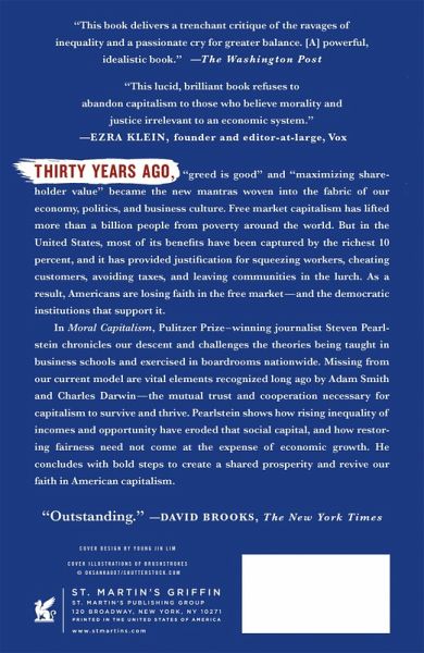 Thirty years ago, greed is good and maximizing shareholder value became the new mantras woven into the fabric of our business culture, economy, and politics. Although, around the world, free market capitalism has lifted more than a billion people from poverty, in the United States most of the benefits of economic growth have been captured by the richest 10%, along with providing justification for squeezing workers, cheating customers, avoiding taxes, and leaving communities in the lurch. As a result, Americans are losing faith that a free market economy is the best system.In Moral Capitalism, Pulitzer Prize-winning journalist Steven Pearlstein chronicles our descent and challenges the theories being taught in business schools and exercised in boardrooms around the country. Were missing a key tenet of Adam Smiths wealth of nations: without trust and social capital, democratic capitalism cannot survive. Further, equality of incomes and opportunity need not come at the expense of economic growth.Pearlstein lays out bold steps we can take as a country: a guaranteed minimum income paired with universal national service, tax incentives for companies to share profits with workers, ending class segregation in public education, and restoring competition to markets. He provides a path forward that will create the shared prosperity that will sustain capitalism over the long term.