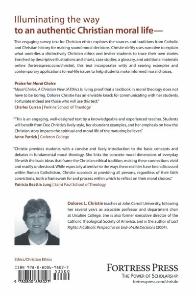 This survey text for Christian ethics courses traces the sources and traditions that define the history and development of contemporary ethical principles, rules, and norms. Distinctive in her approach, Dee Christie takes seriously the importance of narrative in reaching out to students who seek to understand themselves as they face challenges and dilemmas in living an authentic moral life. Stories are employed to reflect one's own life and its meaning, as well as prompting moral reflection and inspiring moral vision in the emotional, and rational, process of making good decisions. The book gives full treatment to criteria needed for ethical decision-making that students use in evaluating a series of contemporary issues, including abortion, end of life, torture, and others. The book includes numerous pedagogic features, including boxes, questions, key terms, suggested readings, and a glossary