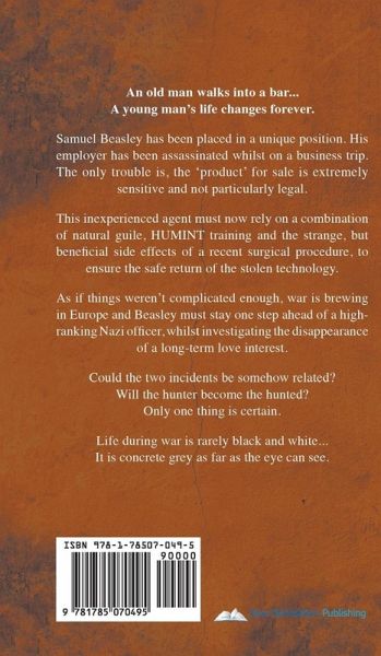 An old man walks into a bar... A young man's life changes forever. Samuel Beasley has been placed in a unique position. His employer has been assassinated whilst on a business trip. The only trouble is, the 'product' for sale is extremely sensitive and not particularly legal. This inexperienced agent must now rely on a combination of natural guile, HUMINT training and the strange, but beneficial side effects of a recent surgical procedure, to ensure the safe return of the stolen technology. As if things weren't complicated enough, war is brewing in Europe and Beasley must stay one step ahead of a high-ranking Nazi officer, whilst investigating the disappearance of a long-term love interest. Could the two incidents be somehow related? Will the hunter become the hunted? Only one thing is certain. Life during war is never black and white... It is concrete grey as far as the eye can see.