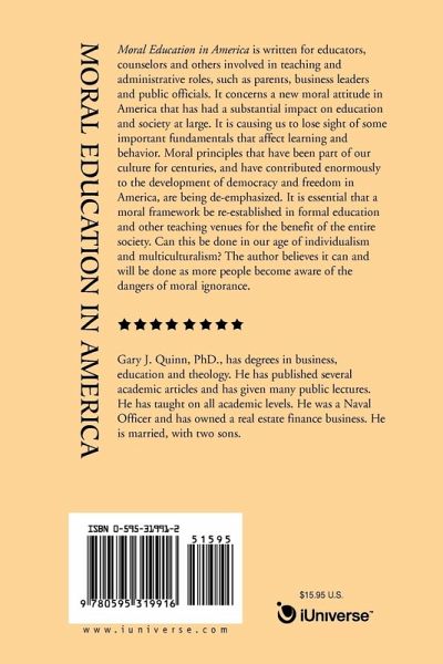 Moral Education in America is written for educators, counselors and others involved in teaching and administrative roles, such as parents, business leaders and public officials. It concerns a new moral attitude in America that has had a substantial impact in education and society at large. It is causing us to lose sight of some important fundamentals that affect learning and behavior. Moral principles that have been part of our culture for centuries, and have contributed enormously to the development of democracy and freedom in America, are being de-emphasized. It is essential that a moral framework be re-established in formal education and other teaching venues for the benefit of the entire society. Can this be done in our age of individualism and multiculturalism? The author believes it can and will be done as more people become aware of the dangers of moral ignorance.