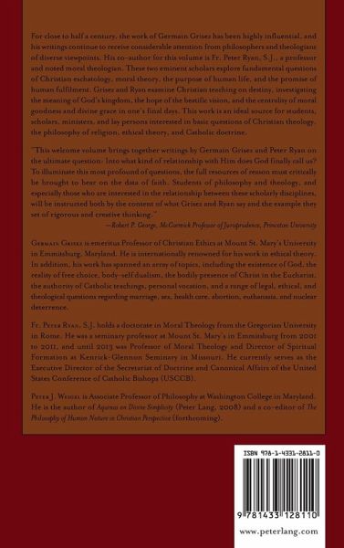 For close to half a century, the work of Germain Grisez has been highly influential, and his writings continue to receive considerable attention from philosophers and theologians of diverse viewpoints. His co-author for this work is the professor and noted moral theologian Fr. Peter Ryan, S.J., currently the executive director of the Secretariat of Doctrine and Canonical Affairs of the United States Conference of Catholic Bishops (USCCB). These two eminent scholars explore fundamental questions about Christian eschatology, moral theory, the purpose of human life, and the promise of human fulfilment. The authors examine Christian teaching on the final destiny of persons, investigating the meaning of God's kingdom, the hope of the beatific vision, and the centrality of moral goodness and divine grace in one's final end. This work is an ideal source for students, scholars, ministers and lay persons interested in basic questions of Christian theology, the philosophy of religion, ethical theory, and Catholic doctrine.