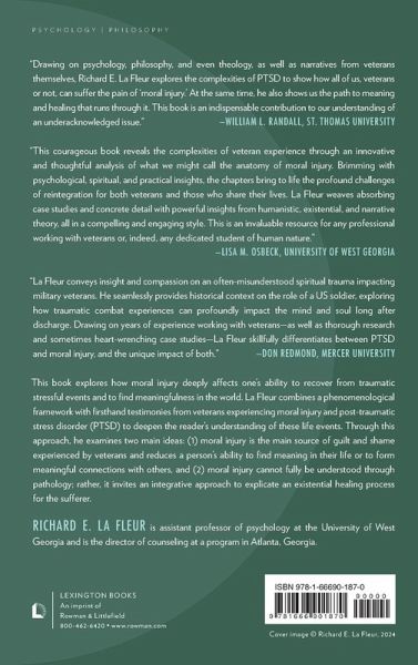 Richard E. La Fleur's, Moral Injury and the American Veteran: Finding Meaning in Trauma, Guilt, and Shame explores how moral injury, the collective manifestation of shame and guilt as a result of betrayal and transgression, experienced by veterans returning from war deeply affects one's ability to recover from traumatic stressful events, and to find meaningfulness in the world. La Fleur combines a phenomenological framework with first-hand testimonies from veterans experiencing moral injury and post-traumatic stress disorder (PTSD) to deepen the reader's understanding of these life events. Through this approach, he examines two main ideas: (1) moral injury is the main source of guilt and shame experienced by veterans and reduces a person's ability to find meaning in their life or to form meaningful connections with others, and (2) moral injury cannot fully be understood through pathology, rather it invites an integrative approach to explicate an existential healing process for the sufferer. Connecting meaningfulness and the power of lived experiences, this book uses a holistic approach to reveal the human condition. Moral Injury and the American Veteran is an important resource for psychology scholars, religious leaders, health care workers, practitioners, and those who serve our veteran communities.