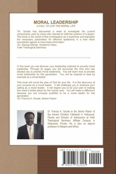 In this book you will discover your leadership potential to provide moral leadership. Through its pages you will encounter the One who has elected you to provide moral leadership. You will learn how to provide moral leadership for this generation. You will be inspired to lead by example as a moral leader.