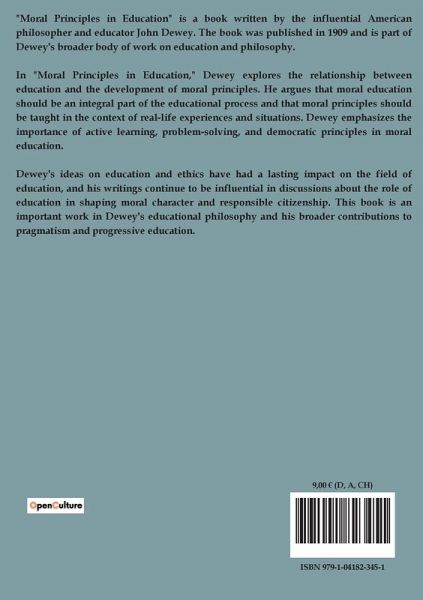 "Moral Principles in Education" is a book written by the influential American philosopher and educator John Dewey. The book was published in 1909 and is part of Dewey's broader body of work on education and philosophy. In "Moral Principles in Education," Dewey explores the relationship between education and the development of moral principles. He argues that moral education should be an integral part of the educational process and that moral principles should be taught in the context of real-life experiences and situations. Dewey emphasizes the importance of active learning, problem-solving, and democratic principles in moral education. Dewey's ideas on education and ethics have had a lasting impact on the field of education, and his writings continue to be influential in discussions about the role of education in shaping moral character and responsible citizenship. This book is an important work in Dewey's educational philosophy and his broader contributions to pragmatism and progressive education.