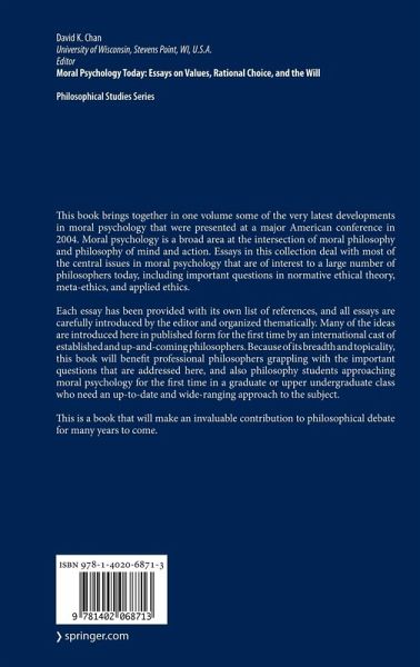 Moral Psychology Today David K. Chan Philosophers working in the ?eld of moral psychology concern themselves with issuesandquestionsthat straddleacrossmorethanonesub-disciplinein philosophy. The answers that they propose and the theories that they propound have impli- tions for moral philosophy,the philosophyof mind, epistemology and metaphysics. Philosophers with an interest in the 'will' or the motivational psychology of human action dividebetween those investigatingpsychologicalandbehavioralconceptsfor their own sake, and those working on action theory for the sake of answering larger questions, especially ethical ones. The essays in this volume, all of which were presented at a conference on Values, Rational Choice, and the Will, belong largely in the latter category of research. The essays here contribute to debates and discussions on a wide range of topics that are of current interest in moral psychology. These essays demonstrate both the breadth of the ?eld of moral psychology and the importance of the questions - vestigated. Arti?cial boundaries between sub-disciplines of philosophy are crossed in putting these essays together in the same anthology. There are essays here in meta-ethics and in normative ethics. There are essays in ethical theory and in - plied ethics. There are essays that draw on discoveries in empirical psychology.