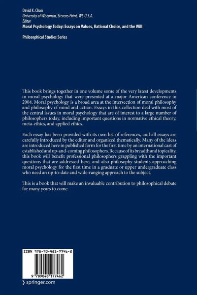 Moral Psychology Today David K. Chan Philosophers working in the ?eld of moral psychology concern themselves with issuesandquestionsthat straddleacrossmorethanonesub-disciplinein philosophy. The answers that they propose and the theories that they propound have impli- tions for moral philosophy,the philosophyof mind, epistemology and metaphysics. Philosophers with an interest in the 'will' or the motivational psychology of human action dividebetween those investigatingpsychologicalandbehavioralconceptsfor their own sake, and those working on action theory for the sake of answering larger questions, especially ethical ones. The essays in this volume, all of which were presented at a conference on Values, Rational Choice, and the Will, belong largely in the latter category of research. The essays here contribute to debates and discussions on a wide range of topics that are of current interest in moral psychology. These essays demonstrate both the breadth of the ?eld of moral psychology and the importance of the questions - vestigated. Arti?cial boundaries between sub-disciplines of philosophy are crossed in putting these essays together in the same anthology. There are essays here in meta-ethics and in normative ethics. There are essays in ethical theory and in - plied ethics. There are essays that draw on discoveries in empirical psychology.