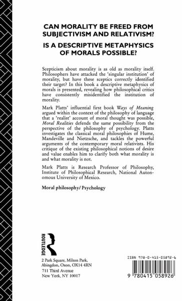 Philosophical critics have consistently misidentified the institution of morality. Platts argues that a `realist' standpoint of moral thought was possible from the perspective of the philosophy of psychology.