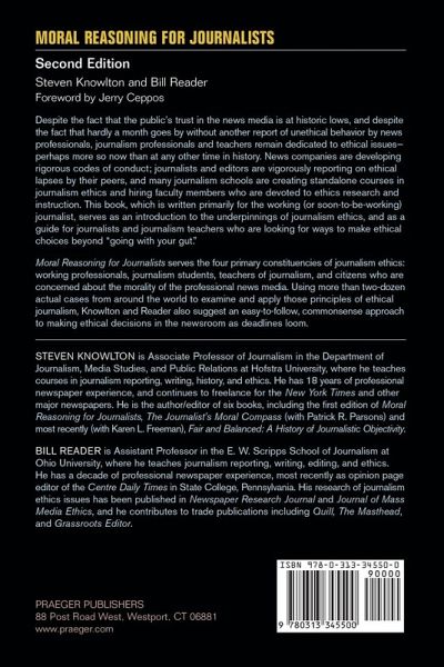 Despite the fact that the public's trust in the news media is at historic lows, despite the fact that hardly a day goes by without another report of unethical behavior by news professionals, journalists and teachers remain dedicated to ethical issues-perhaps more so now than at any other time in history. News companies are developing rigorous codes of conduct; journalists and editors are vigorously reporting on ethical lapses by their peers, and many journalism schools are creating standalone courses in journalism ethics and hiring faculty members who are devoted to ethics research and instruction. Using more than two-dozen actual cases from around the world to examine and apply those principles of ethical journalism, Knowlton and Reader suggest an easy-to-follow, commonsense approach to making ethical decisions in the newsroom as deadlines loom. Moral Reasoning for Journalists serves as an introduction to the underpinnings of journalism ethics, and as a guide for journalists and journalism teachers looking for ways to make ethical choices beyond going with your gut.