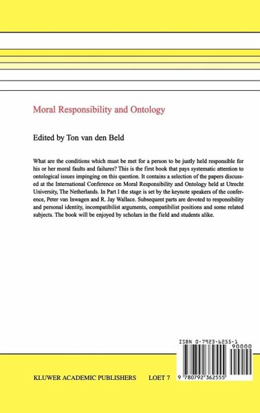 Ton van den Beld This book is one of the results of the international conference on Moral Responsibility and Ontology, which was held at Utrecht University in 1 June 1998. It contains a selection of the revised versions of the papers discussed at the conference. The theme is in need of some clarification. In the first place, 'responsi bility' is an ambiguous term. Although addition of the adjective 'moral' reduces the variety of its meanings (for example, moral responsibility cannot be confused with causal responsibility), different interpretations are still possible. Thus, the care of dependent children is a parental moral responsibility. That is, parents have the moral obligation to care for their children. It is their moral task, or role, to do so. If they fail to fulfil this obligation, they might be morally responsible for the result of this failure. Here, another meaning of 'moral responsibility' is involved: the children's misery might be imputed to their parents. They maybe liable to blame. Moral responsibility in this sense is what the conference was and this book is about. It is about the conditions which must be met for a person to be justly held responsible for his or her moral faults and failures.