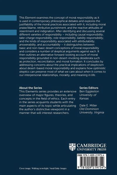 This Element examines the concept of moral responsibility as it is used in contemporary philosophical debates and explores the justifiability of the moral practices associated with it, including moral praise/blame, retributive punishment, and the reactive attitudes of resentment and indignation.