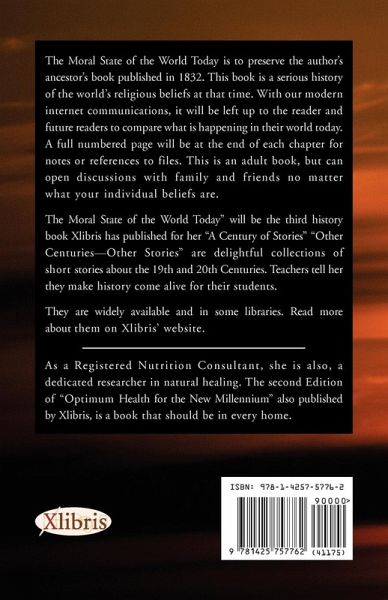 The Moral State of the World Today is to preserve the author's ancestor's book published in 1832. This book is a serious history of the world's religious beliefs at that time. With our modern internet communications, it will be left up to the reader and future readers to compare what is happening in their world today. A full numbered page will be at the end of each chapter for notes or references to files. This is an adult book, but can open discussions with family and friends no matter what your individual beliefs are.