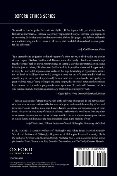 F.M. Kamm is Littauer Professor of Philosophy and Public Policy, Harvard Kennedy School, and Professor of Philosophy, Department of Philosophy, Harvard University. She is the author of Creation and Abortion; Mortality, Mortality, Vols. 1 and 2; Intricate Ethics; Ethics for Enemies: Terror, Torture, and War; Bioethical Prescriptions; and The Trolley Problem Mysteries