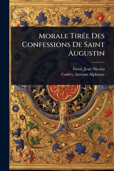 Morale TirÃ(c)e Des Confessions De Saint Augustin, examines the moral and spiritual lessons derived from Saint Augustine's seminal work, "Confessions." This edition, published in 1863, presents a reflection on Augustine's insights into human nature, morality, and the search for divine truth, offering readers guidance on living a virtuous and meaningful life. The text delves into themes of self-reflection, repentance, and the pursuit of spiritual enlightenment as articulated by Saint Augustine. Authored by Jean-Nicolas Grou, with contributions by Antoine-Alphonse Cadrès, this work provides a thoughtful interpretation of Augustine's enduring legacy. Readers interested in moral philosophy, Christian theology, and the exploration of inner life will find value in this historical analysis. This work has been selected by scholars as being culturally important, and is part of the knowledge base of civilization as we know it. This work was reproduced from the original artifact, and remains as true to the original work as possible. Therefore, you will see the original copyright references, library stamps (as most of these works have been housed in our most important libraries around the world), and other notations in the work. This work is in the public domain in the United States of America, and possibly other nations. Within the United States, you may freely copy and distribute this work, as no entity (individual or corporate) has a copyright on the body of the work. As a reproduction of a historical artifact, this work may contain missing or blurred pages, poor pictures, errant marks, etc. Scholars believe, and we concur, that this work is important enough to be preserved, reproduced, and made generally available to the public. We appreciate your support of the preservation process, and thank you for being an important part of keeping this knowledge alive and relevant.