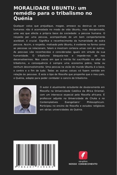 Qualquer coisa que prejudique, magoe, ameace ou destrua os seres humanos não é acomodada no modo de vida Ubuntu, mas desaprovada, uma vez que afecta a própria base da sociedade: a pessoa humana. O respeito por uma pessoa, acompanhado de um bom comportamento aceitável, é crucial. Significa o reconhecimento da humanidade de outra pessoa. Assim, o respeito, motivado pelo Ubuntu, é evidente na forma como as pessoas se relacionam, falam e mostram cortesia umas com as outras. As pessoas são reconhecidas e consideradas iguais em virtude da sua humanidade. O tribalismo bloqueia-nos e impede-nos de nos desenvolvermos. Nos casos em que o mérito foi sacrificado no altar do tribalismo, a consequência é sempre uma economia pobre, lenta ou nenhum desenvolvimento. Uma pessoa na visão de mundo Ubuntu é a base, o centro e o fim de tudo. Todas as outras coisas só fazem sentido em relação às pessoas. É este o tipo de filosofia que proponho que o meu país, o Quénia, adopte para poder combater o cancro do tribalismo.