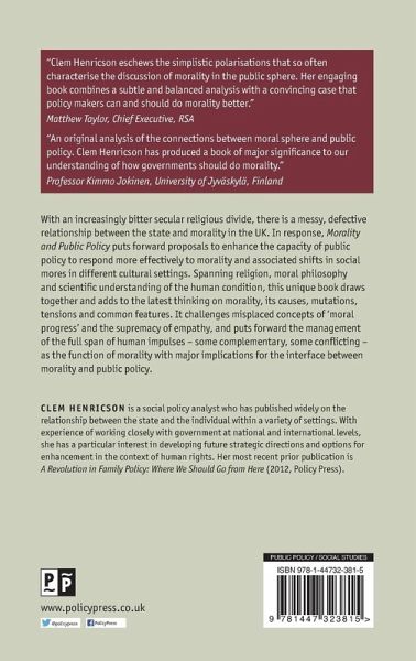 Spanning religion, moral philosophy and scientific understanding of the human conditions, this unique book adds to the latest thinking on morality, proposing ways to enhance the capacity of public policy to respond to morality and associated shifts in social mores in different cultural settings.